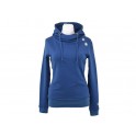 Dámská mikina s prodlouženými rukávy, rovnější v pase, s velkou kapucí a tkaničkou uvnitř na stažení. Rukávy, kapsy a dolní lem jsou ukončeny nápletem... S výšivkou kopretin - na rameni, na kapuci, na rukávu.Materiál: 96% bavlna + 4% elastan - příjemný elastický úplet, z rubu počesaný Velikost: L, délka 67cm