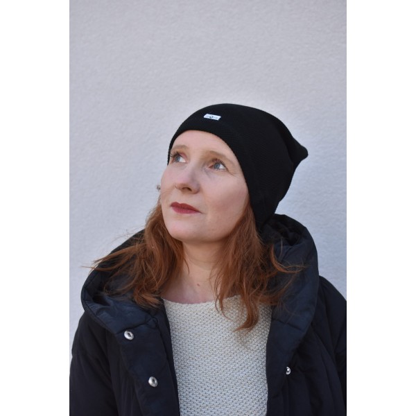 Čepice je zhotovena z bavlna/pes/elastan. Je volnějšího střihu mírně přepadlá. Ve předu ozdobena logem. Velikost je UNI.