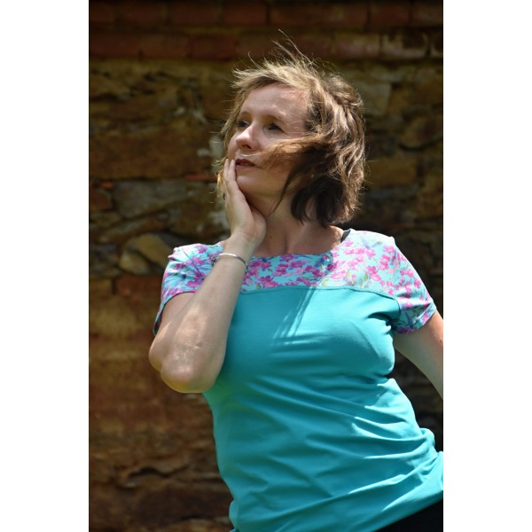 Triko je zhotovené z bavlny/elastan. Sedýlko je z viskozy. Toto triko se hodí pro všechny věkové kategorie. Sedýlko člení triko na dvě části, díky němu se schovají nedostatky na postavě. Dolní kraj trika je hladký bez patentu. Doporučené praní v pračce na 40°C.