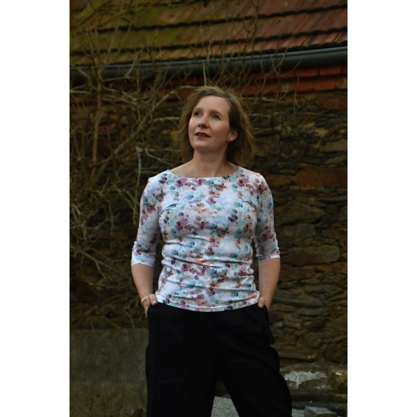 Pohodlné květinové triko hladkého střihu s 3/4 rukávem. V pase je mírně projmuté. Je ušité z příjemného materiálu. Jednoduchost střihu zaručí pohodlí v práci i při volnočasových aktivitách. Použitý materál je bavlna/elast.