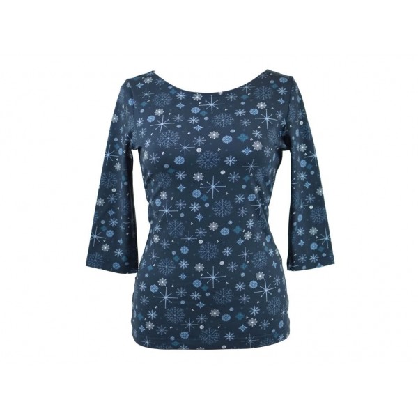 Dámské tričko z příjemného elastického úpletu. V pase projmuté, lodičkový výstřih, 3/4 rukáv.